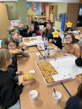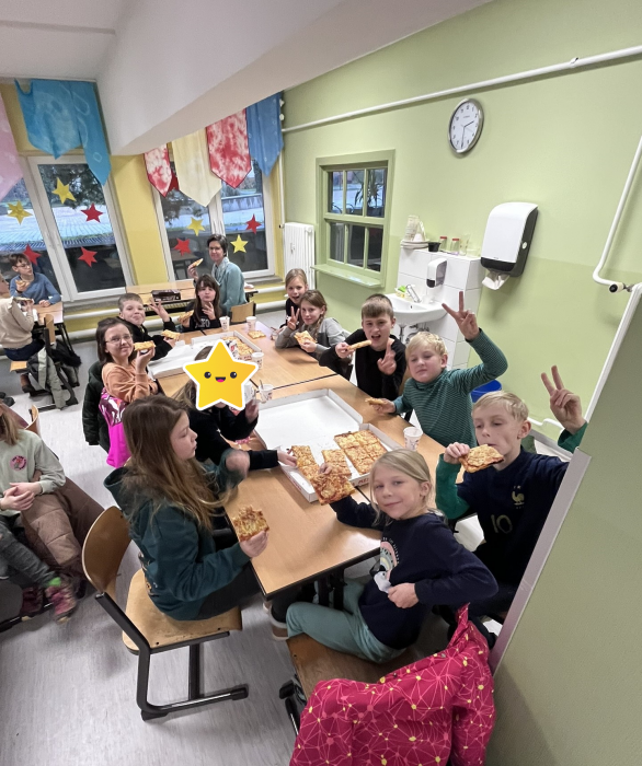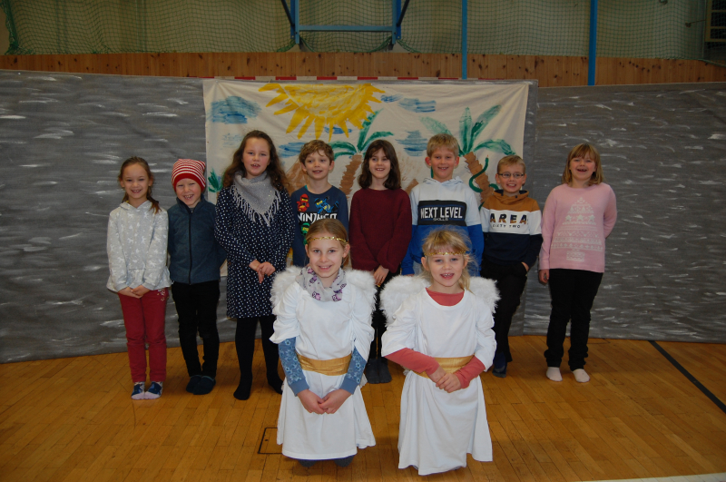 Die 3. und 4. Klasse sahen sich alle Theaterstücke und Aufführungen vom Adventsfest mit gemischten Gefühlen an. Einige waren kritisch über ihre eigene Leistung, andere überrascht, wie gut doch vieles geklappt hat. Die Kinder sangen noch einmal mit voller Begeisterung alle Lieder mit und gaben Vorschläge fürs nächste Jahr. Zur Freude aller, gab es dann Pizza frisch vom Pizzabäcker und Kakao.