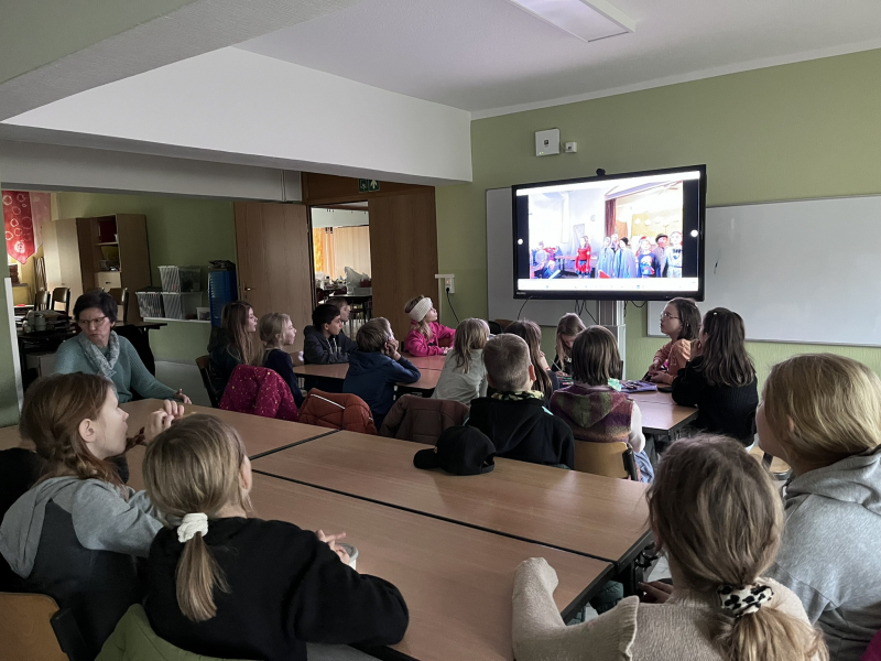 Die 2. Klasse konnte die Theaterstücke noch einmal auf der Leinwand sehen und nebenbei ein paar leckere Plätzchen naschen.